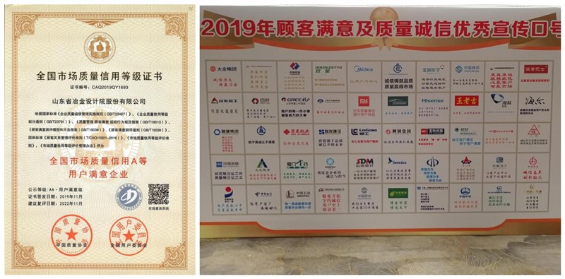 此稱號是在全國范圍內,經公開、公正、嚴格的第三方調查及省、國家兩級評審單位評選產生的。公司提出并倡導的服務口號,在全國上千家企業中脫穎而出,入選中國質量協會、全國用戶委員會2019“滿意中國年會”優秀宣傳口號,并在眾多新聞媒體上進行了公開展示,進一步提升了山冶設計的品牌形象。