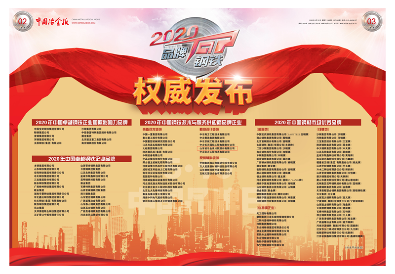 中國鋼鐵品牌榜是中國冶金報社于2017年首次發(fā)布、連續(xù)第四年組織的品牌評選活動。此次評選是根據(jù)上一年度企業(yè)經(jīng)營情況、品牌建設(shè)投入情況、微信投票、業(yè)內(nèi)專家意見等作出的綜合評定,其關(guān)注度已遠(yuǎn)超2017年水平,是鋼鐵行業(yè)最權(quán)威的品牌排行之一。此次評選活動也是我公司首次入選 “中國鋼鐵技術(shù)與服務(wù)供應(yīng)商品牌企業(yè)”。 標(biāo)志著我公司在中國鋼鐵冶建第一梯隊的地位越來越得到了業(yè)內(nèi)和主流媒體的廣泛認(rèn)可。
