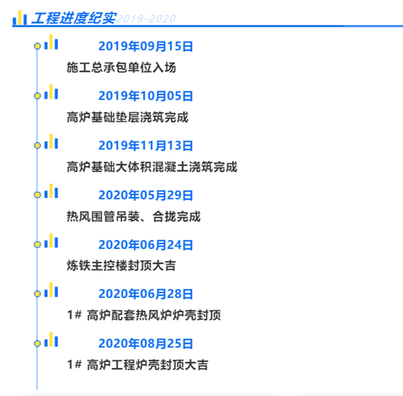 山鋼股份萊蕪分公司1#3800 m3高爐工程,于2019916日正式開工,陸續完成了高爐基礎、熱風爐基礎、熱風爐封頂等重大節點,2020825日,高爐順利封頂。在建設過程中,項目部所有成員經歷了疫情的影響,嚴寒和酷暑的考驗,最終在各方的共同努力下,克服了重重困難,使工程進度穩步推進,高爐工程如期封頂。