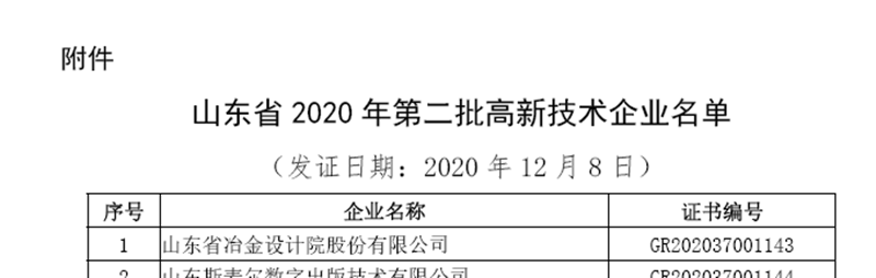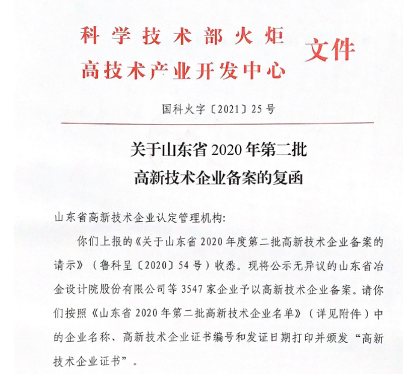 自20204月起,在公司領(lǐng)導(dǎo)的大力支持下及相關(guān)部門的通力協(xié)作下,科技部組織完成了高新技術(shù)企業(yè)認(rèn)定所需的12大項(xiàng)共53小項(xiàng)共計(jì)2072頁材料,經(jīng)高新區(qū)、濟(jì)南市和山東省主管機(jī)構(gòu)的現(xiàn)場審查和專家評(píng)定,最終獲得此項(xiàng)殊榮。