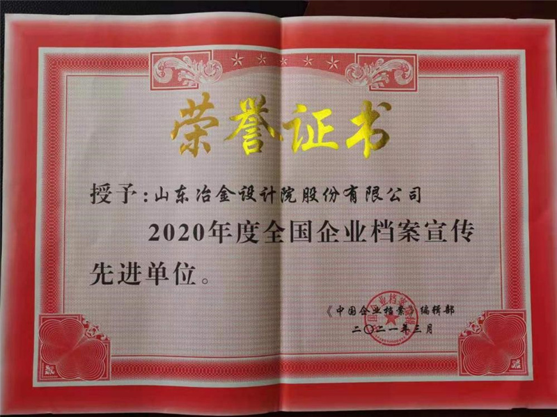 公司獲2020年度全國(guó)企業(yè)檔案宣傳先進(jìn)單位榮譽(yù)