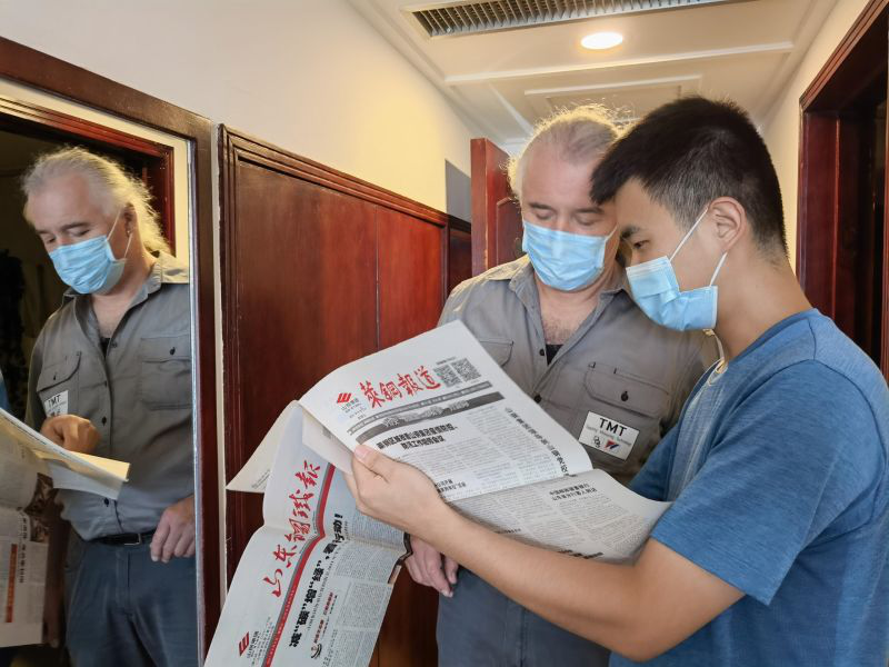 為了搶節點、保生產,給業主交出一份滿意的答卷,在現場項目部和國際工程分公司的共同努力與配合下,積極與TMT北京辦事處聯系說明現場工期緊、任務重,急需技術人員到現場進行指導,最終在各方的共同努力下,克服了新冠疫情及各種不利影響,外方技術人員如期到場,順利展開各項工作。