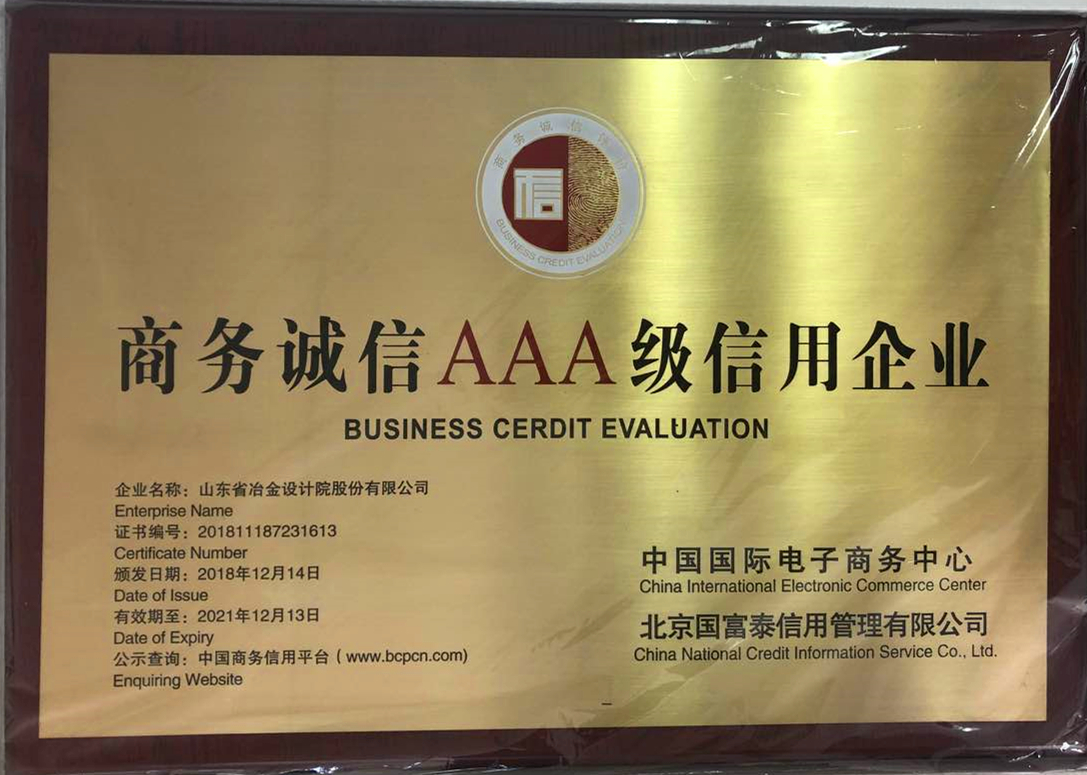 本次信用評級經過資料申報、行業調查、周邊訪問等一系列社會評估工作程序,經國家商務部中國國際電子商務中心、北京國富泰信用管理有限公司對公司的信用記錄、管理能力、經營水平、社會形象、財務狀況、顧客滿意度、發展前景等綜合實力進行嚴格、全面的分析和審核,最終公司獲得一致通過,并被評為商務誠信等級AAA級信用企業。這是對企業信用的最高等級評價,標志著公司強大的企業綜合實力和良好企業信用度獲得了高度認可。