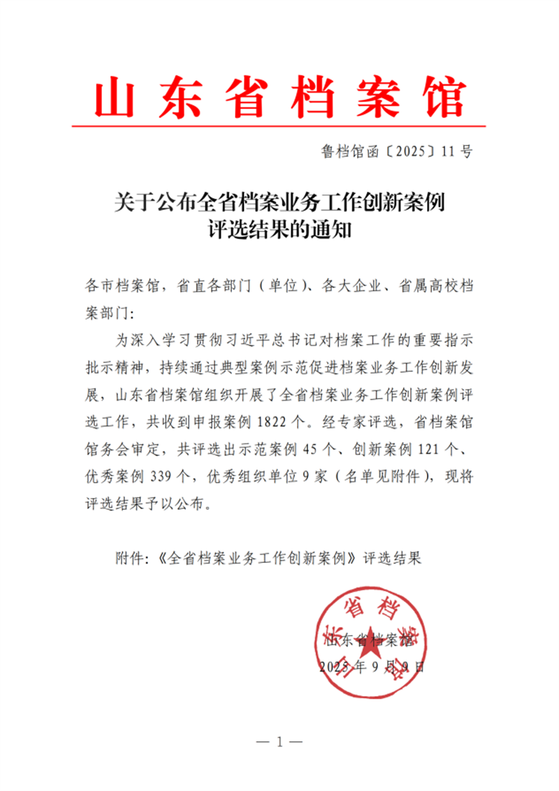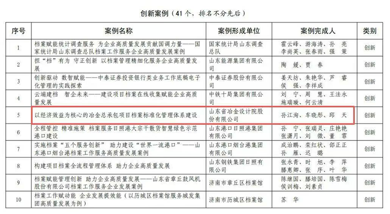 山冶設計入選山東省檔案館 “檔案服務企業高質量發展案例”創新案例
