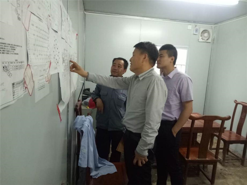 會談之后,宋總到施工現(xiàn)場考察指導高爐公輔項目及污水處理項目工作。在高爐公輔項目施工現(xiàn)場辦公室里,宋總對照著墻上張貼的項目進度計劃及樁基平面圖,詳細了解項目的進展情況,并在考察現(xiàn)場后,認真聽取了項目部對施工進度、質量、安全管理的工作匯報,宋總對項目部管理人員的辛勤工作表示了肯定,并針對工程難度大、樁基分包單位力量弱、價格低等存在的困難做出了部署。