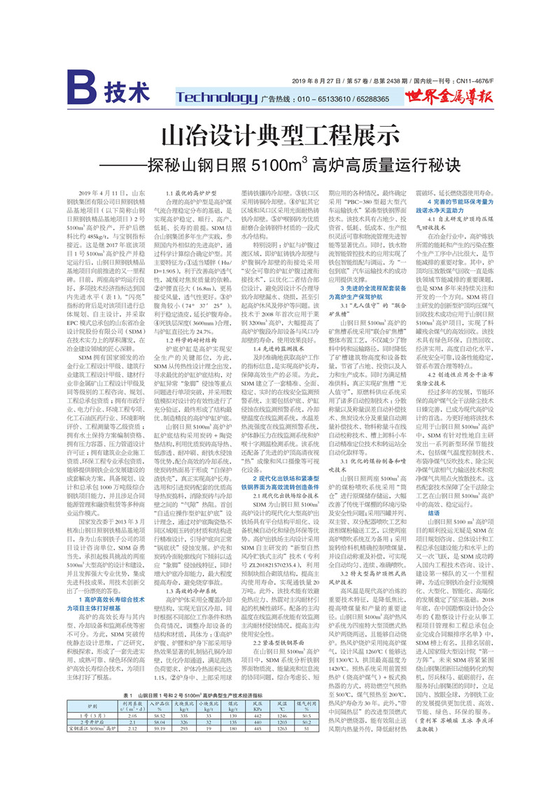 山冶設計典型工程展示——探秘山鋼日照 5100m3 高爐高質量運行秘訣