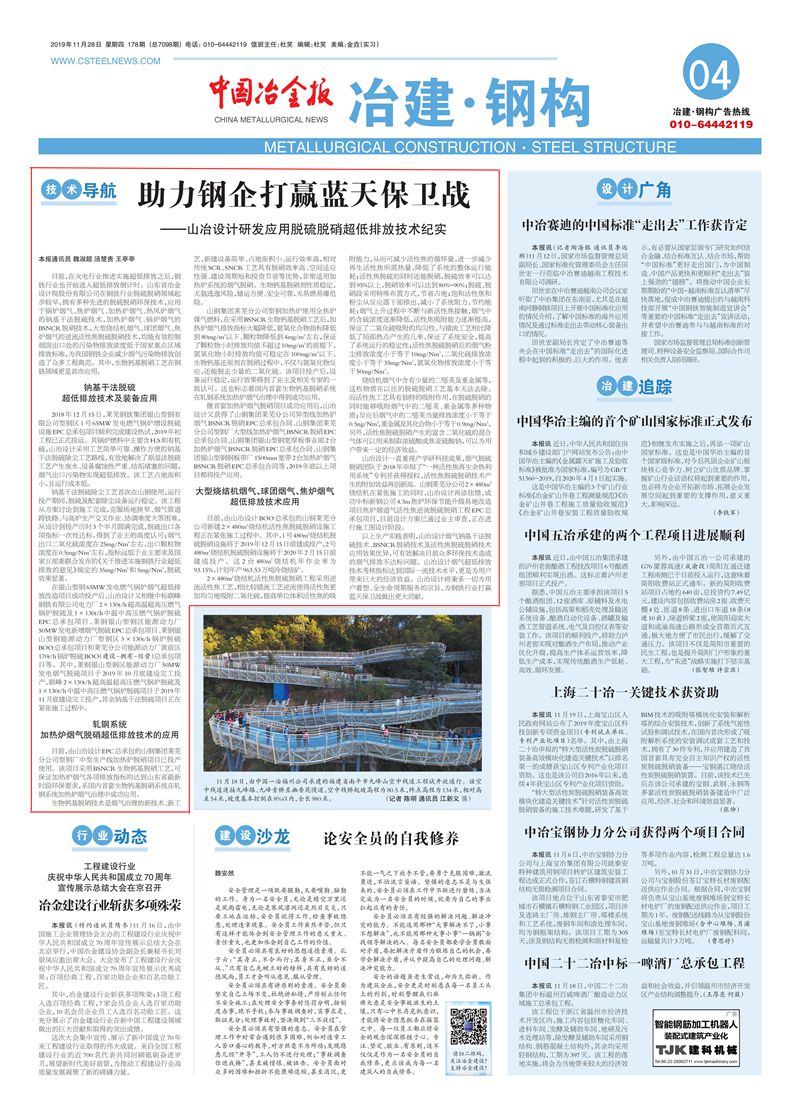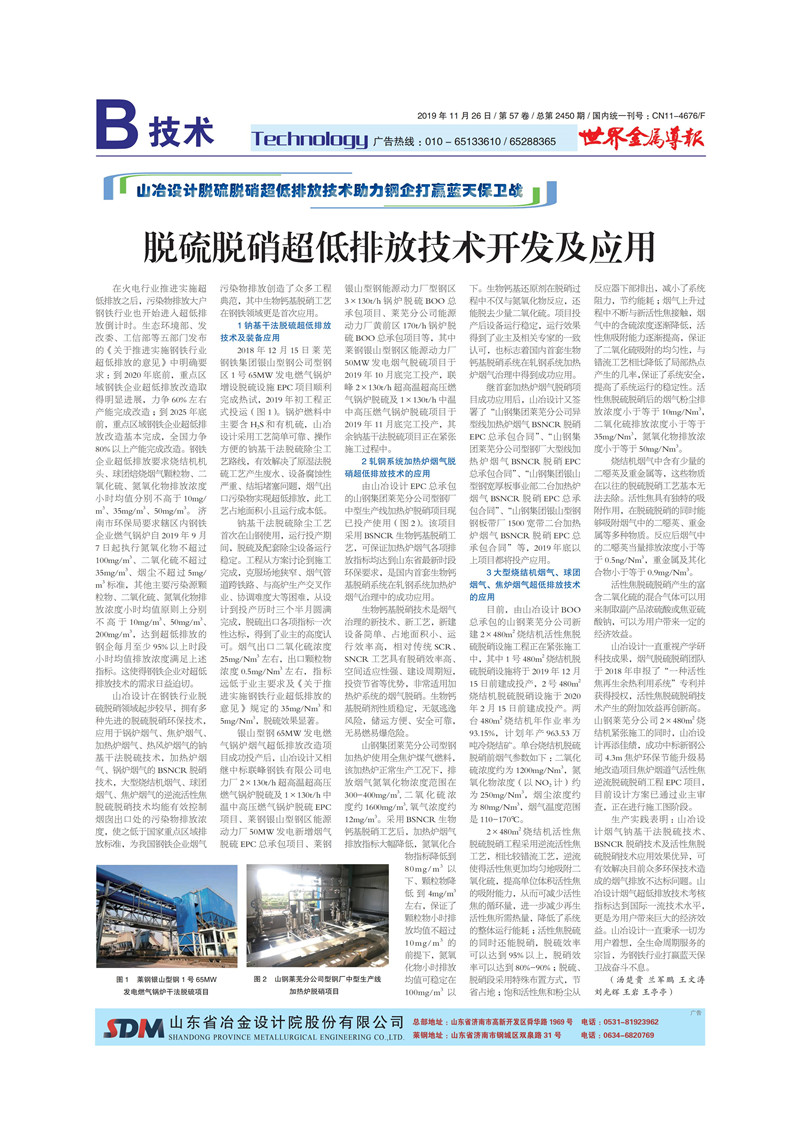 山冶設(shè)計脫硫脫硝超低排放技術(shù)助力鋼企打贏藍(lán)天保衛(wèi)戰(zhàn)——脫硫脫硝超低排放技術(shù)開發(fā)及應(yīng)用